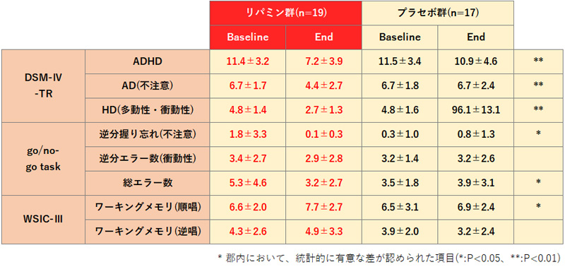 更にADHDに関与すると言われるワーキングメモリーの改善も確認され、リパミン®PSがADHDの改善に有効なことが明らかとなりました。